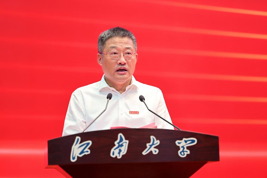 陳衛代表全校師生員工,向來(lái)自世界各地的本科新生表示熱烈歡迎,并以《燃青春 向未來(lái)》為題講授了開(kāi)學(xué)第一課。他希望同學(xué)們問(wèn)道青春,以立志求真燃信仰之光;問(wèn)學(xué)江南,以博學(xué)慎思燃創(chuàng )新之火;問(wèn)心未來(lái),以堅毅篤行燃求學(xué)之夢(mèng)。他勉勵同學(xué)們在強國建設、民族復興偉業(yè)中,做堅定信仰的守望者、勇于創(chuàng )新的探索者、胸懷祖國的建設者,在更好支撐和服務(wù)中國式現代化實(shí)踐中鐫刻璀璨未來(lái)。