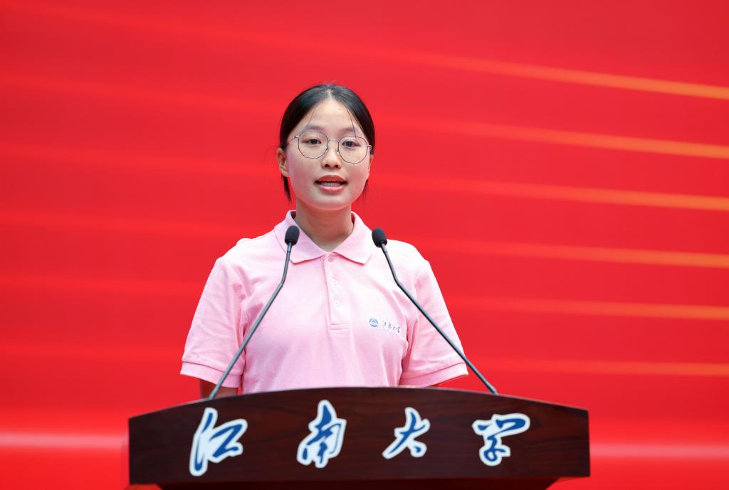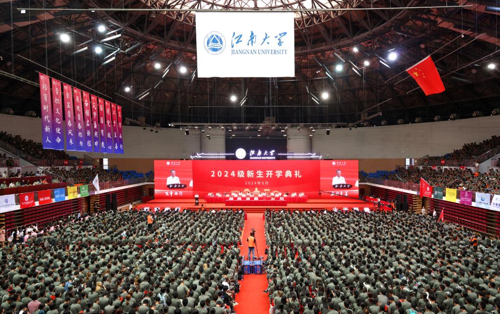 各學(xué)院院長(cháng)(書(shū)記)為新生送上的開(kāi)學(xué)寄語(yǔ),飽含著(zhù)學(xué)院、老師對新生們的諄諄教誨和殷切期望,為新生們的大學(xué)生涯指引方向、注入動(dòng)力。生物工程學(xué)院教授、博士生導師、未來(lái)食品科學(xué)中心副主任周景文代表全體教師發(fā)言,他鼓勵同學(xué)們勤勉篤學(xué)、立志尚行,立德慎行、修身平心,強健體魄、自洽自信,以飽滿(mǎn)的熱情、堅定的信念、不懈的努力,在實(shí)現夢(mèng)想的道路上勇往直前,成長(cháng)為社會(huì )的棟梁之材。機械工程學(xué)院2021級本科生林瀚代表全體在校本科生發(fā)言,他呼吁學(xué)弟學(xué)妹們始終保有突破現實(shí)和自我桎梏的底氣,奮進(jìn)青春與追求卓越的勇氣,篤行當代青年責任與使命的志氣,不斷積蓄青春力量,保持奮進(jìn)姿態(tài),立志成為“有為”的江南人。食品學(xué)院食品AI卓越創(chuàng )新班李代靜同學(xué)作為2024級本科新生代表發(fā)言,她號召同學(xué)們以積極主動(dòng)之姿、無(wú)懼困難之態(tài),探索學(xué)術(shù)的高度,延展夢(mèng)想的廣度,讓個(gè)人的夢(mèng)想融入國家發(fā)展的大潮,共同書(shū)寫(xiě)新時(shí)代的輝煌篇章。