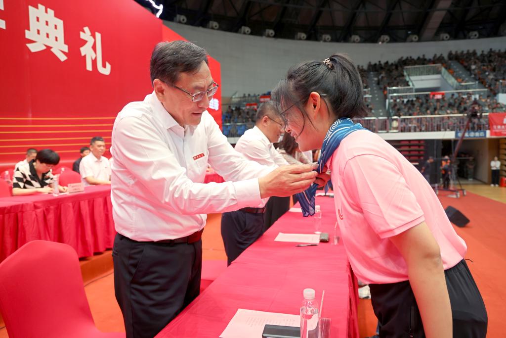 校黨委書(shū)記吳正國為新生授予“江南人”絲帶