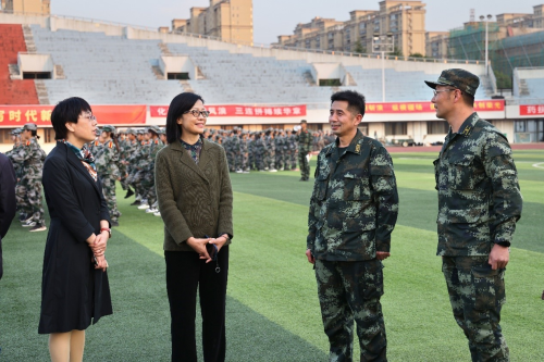 張影陸一行走訪(fǎng)了各訓練場(chǎng)地。訓練場(chǎng)上喊聲陣陣,熱火朝天,學(xué)員們英姿颯爽,教官們號令嚴明。承訓部隊負責人劉群新少校向學(xué)校和部隊領(lǐng)導匯報了軍訓工作情況,張影陸肯定了軍訓工作取得的成果,代表學(xué)校向辛勤付出的軍訓教官表示衷心感謝,鼓勵全體新生學(xué)員再接再厲,砥礪品學(xué),刻苦訓練,力爭在軍訓匯演中以昂揚的斗志,展現江南學(xué)子精神風(fēng)貌。