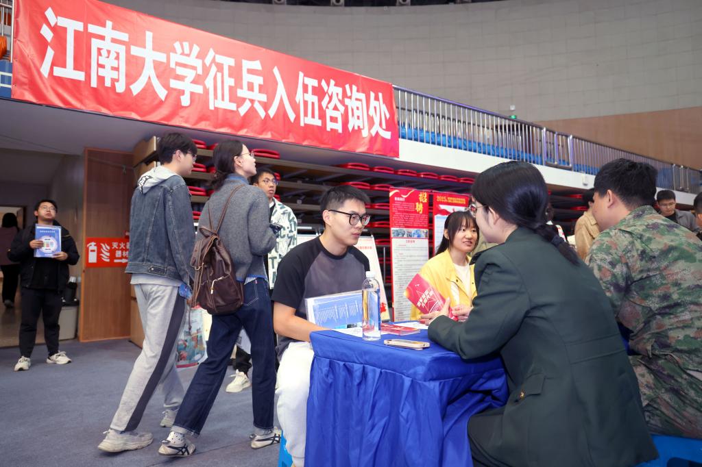 本次宣傳在招聘會(huì )現場(chǎng)設置征兵咨詢(xún)臺,濱湖區人武部征兵工作人員到現場(chǎng)宣傳大學(xué)生應征入伍,武警某部醫院進(jìn)行文職人員招聘。為幫助學(xué)生了解具體政策,現場(chǎng)放置了宣傳展板、并發(fā)放宣傳單頁(yè)。征兵咨詢(xún)臺前的學(xué)生絡(luò )繹不絕,學(xué)生對入伍體檢、政策要求、以及文職人員招錄要求等各方面提出了自己的疑問(wèn),現場(chǎng)征兵工作人員耐心地進(jìn)行詳細解答,鼓勵學(xué)生投身國防事業(yè),同時(shí)對有意向入伍的同學(xué)進(jìn)行了信息登記。