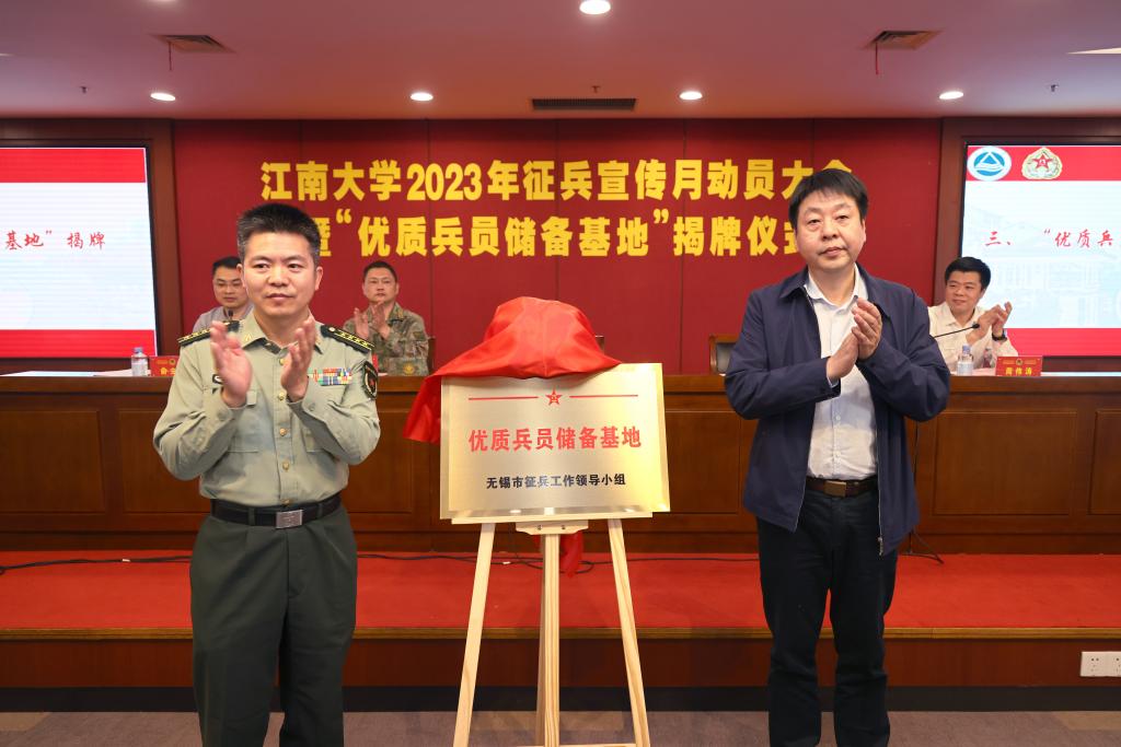 滕曉啟宣讀了無(wú)錫市征兵工作領(lǐng)導小組《關(guān)于確立“優(yōu)質(zhì)兵員儲備基地”的通知》,確立oety歐億為無(wú)錫市首家“優(yōu)質(zhì)兵員儲備基地”,來(lái)全亮和倪松濤共同為基地揭牌。周偉濤作征兵動(dòng)員,他回顧了2022年oety歐億征兵工作情況,對2023年征兵工作進(jìn)行部署,要求加強組織領(lǐng)導、做好宣傳發(fā)動(dòng)和落實(shí)工作流程,并向廣大同學(xué)特別是畢業(yè)生發(fā)出應征入伍的號召。退役復學(xué)的學(xué)生代表陳陌和邱微涵分享入伍的經(jīng)歷和感受,輔導員代表吐?tīng)柨嗽?吐?tīng)栠d分享征兵工作的經(jīng)驗。