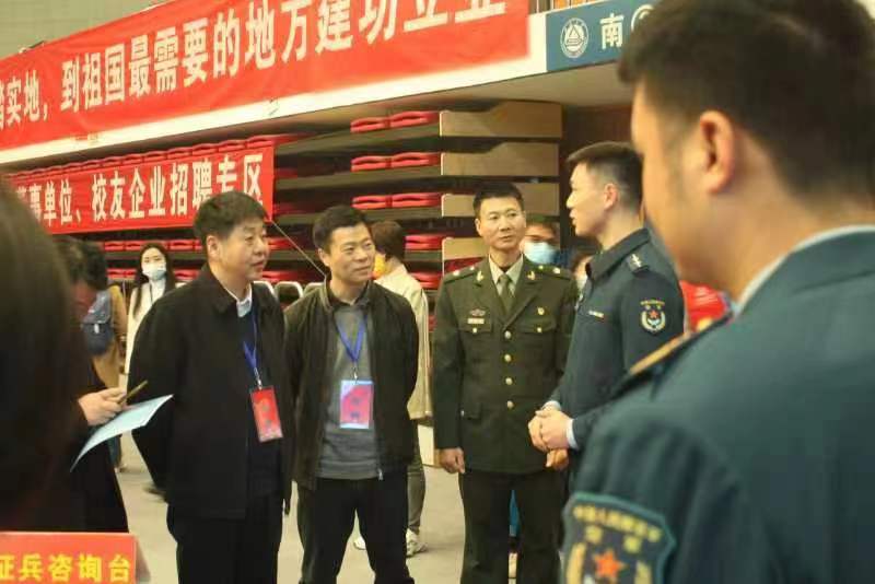 為鼓勵畢業(yè)生積極參軍應征入伍,提高兵員征集質(zhì)量,加強國防和軍隊現代化建設,3月26日,人民武裝部聯(lián)合無(wú)錫空軍某部隊,在學(xué)校體育館的2023屆畢業(yè)生大型招聘會(huì )現場(chǎng)開(kāi)展直招軍官與征兵宣傳活動(dòng)。校長(cháng)陳衛,校黨委常委、副校長(cháng)倪松濤在人武部部長(cháng)周偉濤的陪同下蒞臨現場(chǎng)指導工作。