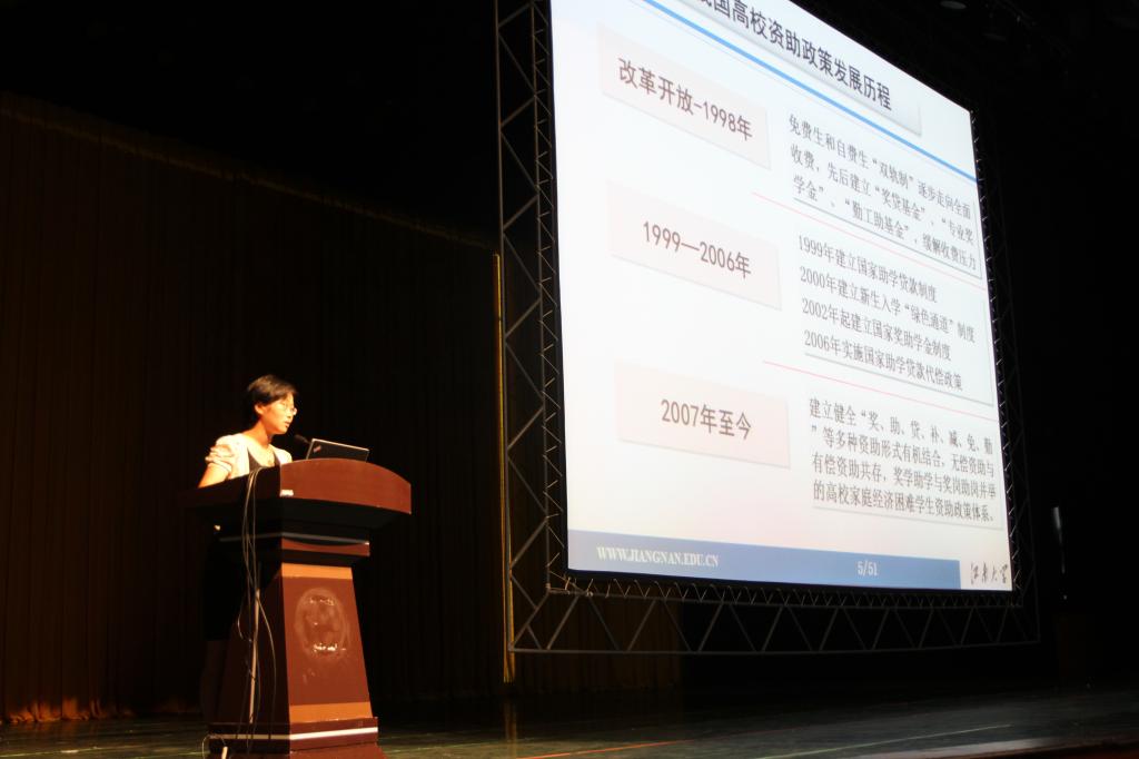 宣講會(huì )前播放的《國家開(kāi)發(fā)銀行助學(xué)貸款宣傳片》以卡通形式詳細地講解了助學(xué)貸款業(yè)務(wù),讓同學(xué)們有了更加清晰的認識;《國家資助助我騰飛》以快板形式具體介紹了大學(xué)生可以獲得的各項資助和獎助學(xué)金情況,內容全面,形式新穎。