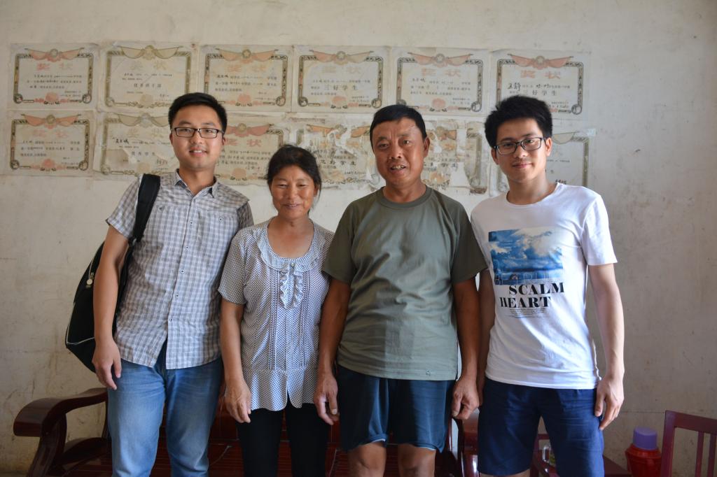 家訪(fǎng)小分隊走訪(fǎng)的第五位學(xué)生小王,家住商城縣李集村。由于沒(méi)有從新縣直達商城的客車(chē),18號下午,小分隊乘坐城鄉巴士回到信陽(yáng)購買(mǎi)物資,19號上午轉乘前往商城縣的客車(chē),趕路近三個(gè)小時(shí),又驅車(chē)一個(gè)小時(shí)才趕到小王家。小分隊走到路口,一家人都熱情的出門(mén)迎接,小王的父親常年在家附近的建筑工地做小工掙錢(qián),小王的母親常年在家務(wù)農,前幾年查出腎里有囊腫,正準備這個(gè)暑假去縣里做手術(shù),小王的姐姐在河南師范大學(xué)讀大三,哥哥在上海讀研二,兄妹三人從小成績(jì)優(yōu)異,家里大大小小的獎狀貼滿(mǎn)兩面墻,小王的父親去年七月份打工時(shí)腰椎受傷,曾躺在床上三個(gè)月不能動(dòng),現已在家連續休養一年,家庭經(jīng)濟負擔很重,卻長(cháng)期失去經(jīng)濟來(lái)源,幾乎難以維持。