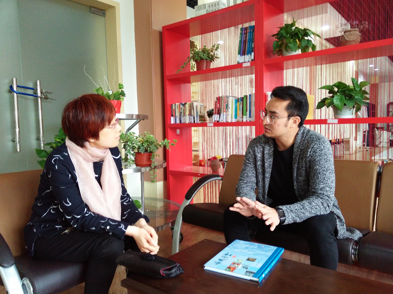 張菁燕處長(cháng)向庫爾班江贈書(shū)并親切交流