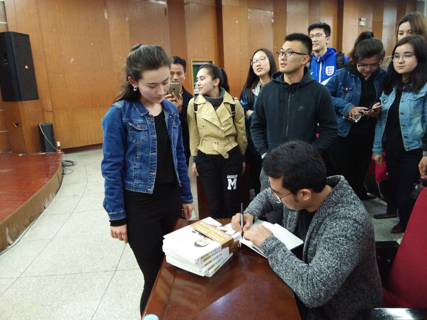 最后,庫爾班江與現場(chǎng)觀(guān)眾進(jìn)行互動(dòng)交流,他親切地回答了如何認清自己的夢(mèng)想,如何從生活中獲得前行的勇氣等問(wèn)題,并建議同學(xué)們學(xué)會(huì )“讀萬(wàn)卷書(shū),行萬(wàn)里路”,“讀書(shū)是為了通過(guò)知識來(lái)強大自己,讓你更好的理解生活,而不是僅僅為了賺錢(qián)?!?整場(chǎng)講座留給同學(xué)們很多的思考,帶給大家深深的激勵,更是給了在場(chǎng)的少數民族同學(xué)極大的精神動(dòng)力。