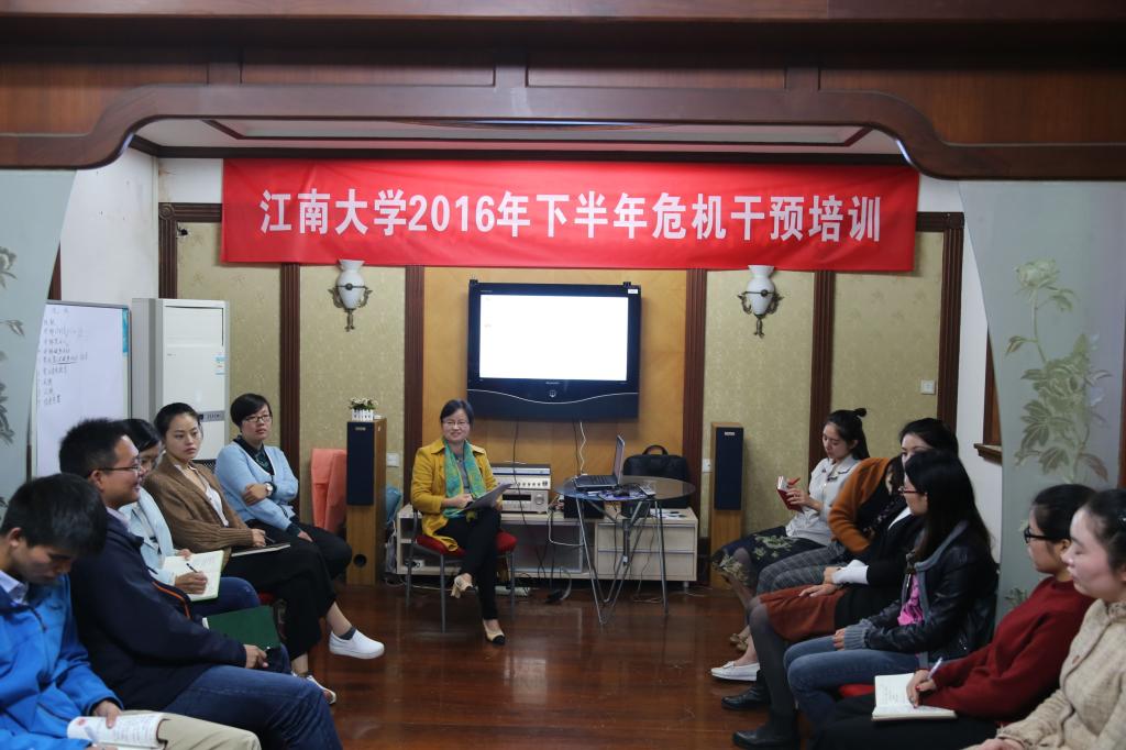 “學(xué)生來(lái)找你聊聊時(shí),你可以通過(guò)非言語(yǔ)行為的觀(guān)察,判斷學(xué)生是不是有難以啟齒的內容。有時(shí)不妨多給他們一些時(shí)間,等待他們做好準備再開(kāi)口,讓他來(lái)主導談話(huà)的進(jìn)程?!痹谳o導員反饋的基礎上,董老師又細致講解了危機干預的原則、如何理解自我傷害行為、如何做好干預的保護性工作三個(gè)問(wèn)題。她通過(guò)個(gè)案分析帶入危機干預的11個(gè)原則:利用個(gè)體所具有的;聚焦在活下去的理由上;讓每次遭遇都有治療價(jià)值;接納危機;挖掘希望;幫助個(gè)體建構建設新目標與當事人以及同事合作;利用系統開(kāi)展工作;保持專(zhuān)念;注意自己的言語(yǔ);評估有效性;做自己能做的。在危機情境中,董老師談到理解自我傷害行為最有用的方式就是仔細傾聽(tīng)個(gè)體是如何描述他們的經(jīng)歷的。有時(shí)軀體上的痛苦能夠幫助個(gè)體緩解情感上的痛苦。更有用的選擇包括把這些行動(dòng)視為一種有目的的病態(tài)的自我幫助行動(dòng),作為應對行為的一種形式可能是適應不良的,但是仍然是一種應對,作為一種問(wèn)題解決的行動(dòng),可能是病態(tài)的,但仍然是問(wèn)題解決性質(zhì)的。理解自我傷害行為的邏輯,“你做這件事一定有一個(gè)很好的理由”。一旦你理解了個(gè)體想從自我傷害中得到什么,或試圖得到什么,老師就可以尋找替代方法,用較少傷害的方法去獲得他們需要的東西。培訓最后,董老師談到對干預的保護性工作就是不要忽略一系列有用的努力。第一是要建立安全感,包括情感上和生理上的;第二是要緩解或者至少能夠接納個(gè)體的痛苦和憤怒,從特定的角度來(lái)講,接納的含義包括了使用平和的語(yǔ)言,引導和強化個(gè)體平靜的一面,聚焦在資源和可能的改變上,關(guān)懷性注意任何可能是“微小”的但是能夠立即幫助個(gè)體釋放壓力的那些因素,一旦能產(chǎn)生效果,接納就成為帶來(lái)希望的開(kāi)始,至少可以避免走向生命結束的痛苦,這樣的希望能夠抵消個(gè)體那種問(wèn)題無(wú)法逃避,無(wú)法終止無(wú)法忍受的念頭。