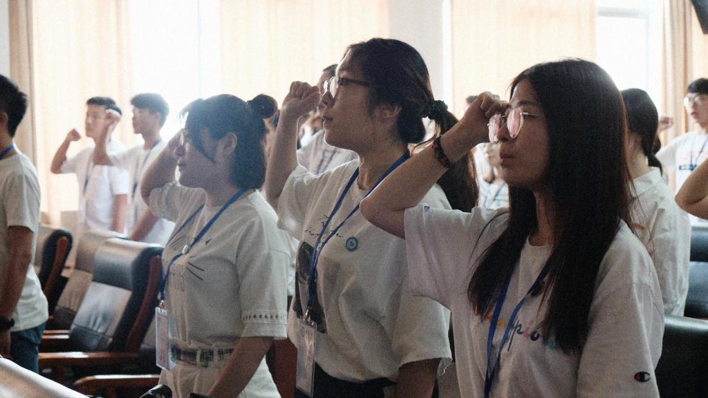 開(kāi)營(yíng)儀式在嘹亮的國歌聲中拉開(kāi)帷幕。第七期菁英班優(yōu)秀營(yíng)員、校研究生會(huì )主席王旭回顧了第七期“骨干菁英計劃”的基本情況,魏珍吉宣讀了第八期“骨干菁英計劃”的營(yíng)員名單,紡織服裝學(xué)院唐歡代表全體菁英班營(yíng)員發(fā)言,提出了本期菁英班的主題“初心 篤實(shí) 拓新”,鼓勵營(yíng)員們堅持初心、力行篤實(shí)、開(kāi)拓創(chuàng )新。單筱婷向第七期、第八期“骨干菁英計劃” 營(yíng)員代表授予營(yíng)旗。開(kāi)營(yíng)儀式還為第八期營(yíng)員代表佩戴了學(xué)員證和訓練營(yíng)徽章。