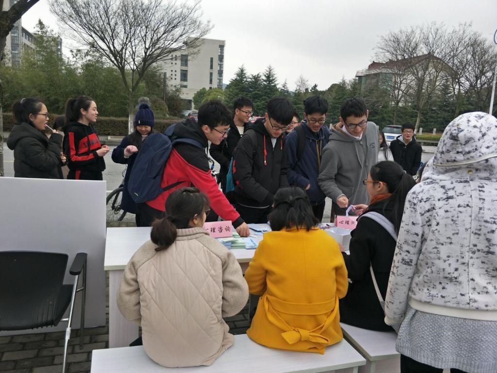 為貫徹落實(shí)教育部辦公廳關(guān)于開(kāi)展“師生健康中國健康”主題健康教育活動(dòng)(教體藝廳函﹝2018﹞10號)、江蘇省教育廳《關(guān)于在全省高校組織開(kāi)展“生命之美,你我共繪——大學(xué)生心理健康教育江蘇行”主題教育活動(dòng)的通知》(蘇教學(xué)函﹝2018﹞2號),進(jìn)一步提升oety歐億心理工作質(zhì)量,促進(jìn)大學(xué)生健康成長(cháng),3月21日下午,由校心理健康教育中心主辦、朋輩心理工作室協(xié)辦的“3.20咱愛(ài)您”心理健康廣場(chǎng)教育活動(dòng),在北區網(wǎng)球場(chǎng)舉辦。