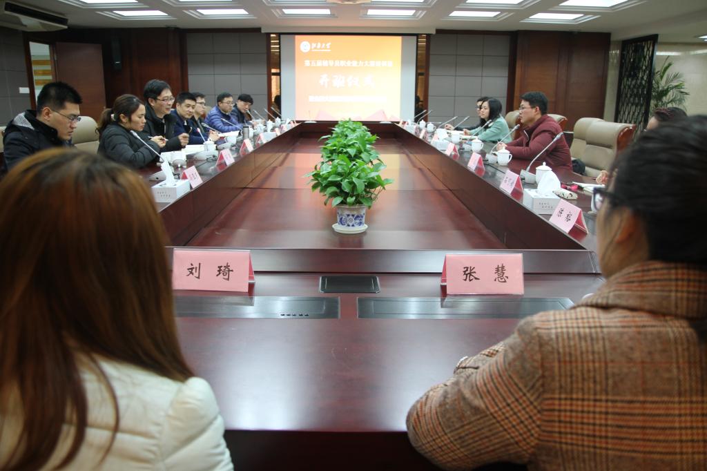 12月7日晚,oety歐億第五屆輔導員職業(yè)能力大賽培訓班在行政樓B305會(huì )議室開(kāi)班。學(xué)生工作部副部長(cháng)陳琳,2017全國輔導員職業(yè)能力大賽一等獎獲得者、中國礦業(yè)大學(xué)公共管理學(xué)院學(xué)工辦主任馬成成以及本屆參賽輔導員參與活動(dòng)。