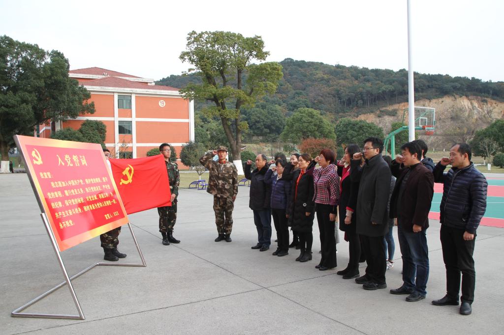最后,全體黨員來(lái)到連隊樓前,面對鮮紅的黨旗,舉起右手莊嚴宣誓,重溫為共產(chǎn)主義奮斗終身的誓詞。宣誓完畢,全體黨員在連隊樓前合影留念,民兵連學(xué)生黨支部成員還與正在訓練的武警官兵合影,學(xué)生黨員備受鼓舞,強烈的使命感和責任感在內心油然升起。