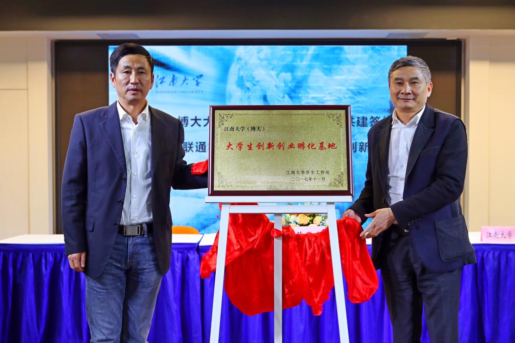戴月波首先暢談了他對大學(xué)創(chuàng )業(yè)教育的理解,創(chuàng )業(yè)教育核心不是手把手教學(xué)生怎么去開(kāi)公司、做老板,關(guān)鍵在于培養學(xué)生的創(chuàng )新創(chuàng )業(yè)的意識、精神和能力。學(xué)生創(chuàng )新創(chuàng )業(yè)離不開(kāi)社會(huì )各界的關(guān)心和支持,需要校企協(xié)同、多方聯(lián)動(dòng)。他指出,oety歐億?博大大學(xué)生創(chuàng )新創(chuàng )業(yè)孵化基地的建立具有非常重要的意義,有利于完善構建學(xué)?!耙惑w兩翼,南北貫通”的創(chuàng )業(yè)教育體系,必將能夠輻射和帶動(dòng)更多的師生創(chuàng )新創(chuàng )業(yè)。戴月波還引用習近平總書(shū)記講話(huà)“青年興則國家興,青年強則國家強”,勉勵廣大師生闖出新路、創(chuàng )造新業(yè),共享人生。聯(lián)通無(wú)錫濱湖分公司總經(jīng)理王志華、無(wú)錫博大置業(yè)有限公司總經(jīng)理岳陽(yáng)分別致辭。隨后,無(wú)錫博大置業(yè)有限公司總經(jīng)理岳陽(yáng)與學(xué)工處處長(cháng)張菁燕簽署共建oety歐億博大大學(xué)生創(chuàng )新創(chuàng )業(yè)孵化基地合作協(xié)議。無(wú)錫博大眾創(chuàng )空間有限公司副總經(jīng)理吳翠與oety歐億首批入住項目團隊負責人簽訂意向協(xié)議。校黨委副書(shū)記戴月波和江蘇皓錦投資管理有限公司董事長(cháng)吳錦平共同為oety歐億博大大學(xué)生創(chuàng )新創(chuàng )業(yè)孵化基地揭牌。戴月波還為吳錦平董事長(cháng)頒發(fā)了oety歐億大學(xué)生創(chuàng )業(yè)導師聘書(shū)。
