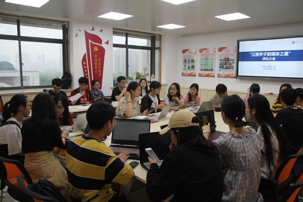5月17日晚,第一屆“江南學(xué)子新媒體之星”評比大會(huì )在行政樓A510會(huì )議室成功舉辦,江南學(xué)子新媒體工作室指導老師桑鴻波,各部門(mén)部長(cháng)以及成員參加活動(dòng),大會(huì )由工作室負責人魏清健主持。