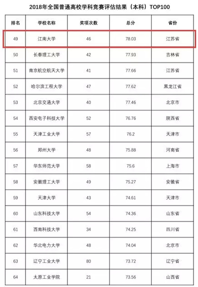 oety歐億位列2018年度普通高校學(xué)科競賽榜單第49名