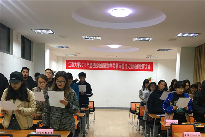 人文學(xué)院谷麗娜爾·托合托蓀作為貸款同學(xué)代表,帶領(lǐng)全體貸款同學(xué)進(jìn)行了誠信宣誓,承諾合理使用貸款、嚴守校紀校規、順利完成學(xué)業(yè)、按時(shí)償還貸款、樹(shù)立良好的信用觀(guān)念。最后,12位首次貸款學(xué)生和26位續貸學(xué)生在中國銀行無(wú)錫分行工作人員的細心指導下,順利簽訂了借款合同與借款借據。