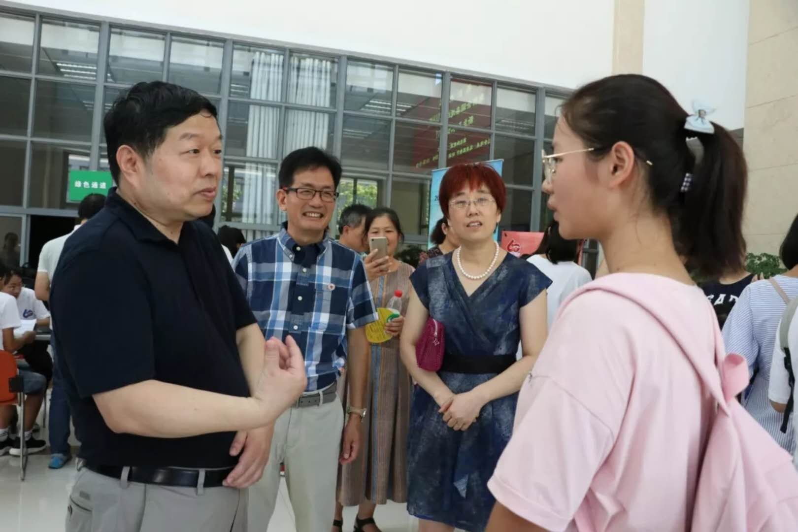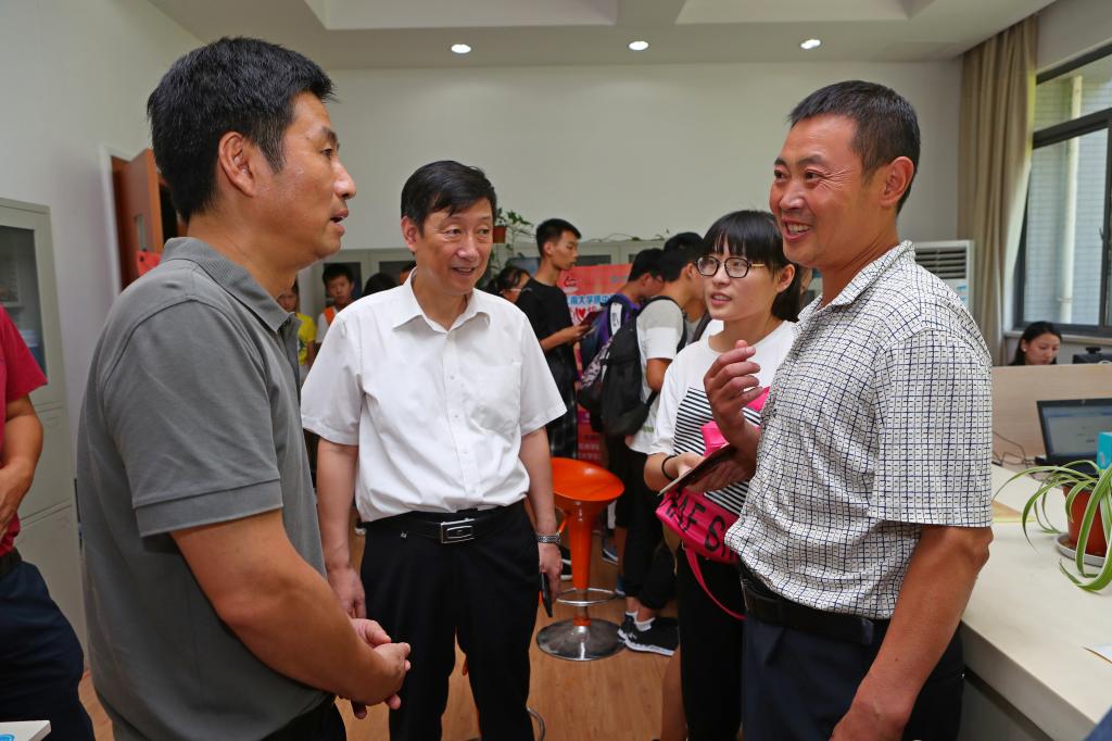 校黨委書(shū)記朱拓在“綠色通道”北區辦理點(diǎn)與入學(xué)的學(xué)生家長(cháng)親切交流