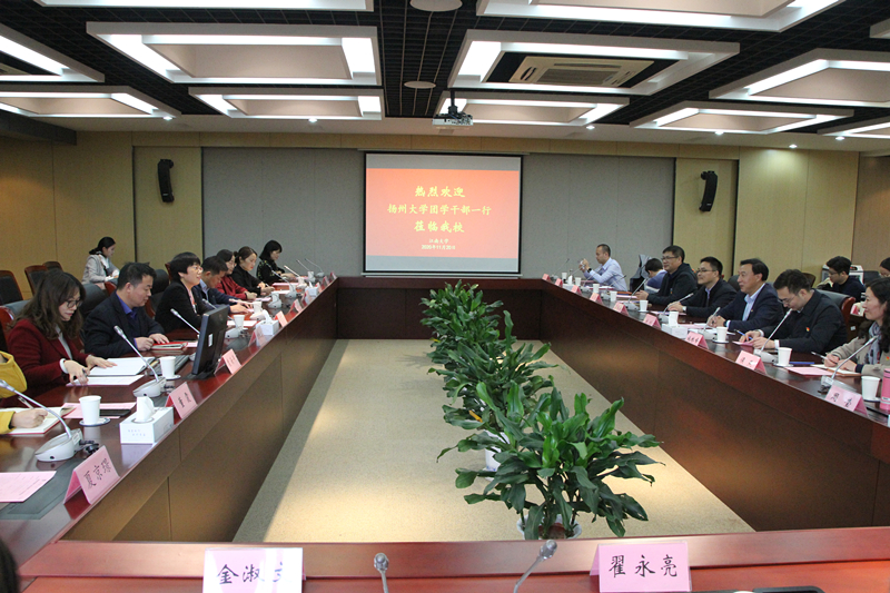 2020年11月20日,揚州大學(xué)學(xué)生工作部(處)部(處)長(cháng)林剛、校團委書(shū)記施林峰等一行19人來(lái)oety歐億調研交流高校團學(xué)工作。oety歐億學(xué)生工作部(處)部(處)長(cháng)張菁燕,校團委書(shū)記孔祥年等11人參加了交流座談。下午15:30,雙方座談交流會(huì )于行政樓B307會(huì )議室舉行,會(huì )議由張菁燕主持。
