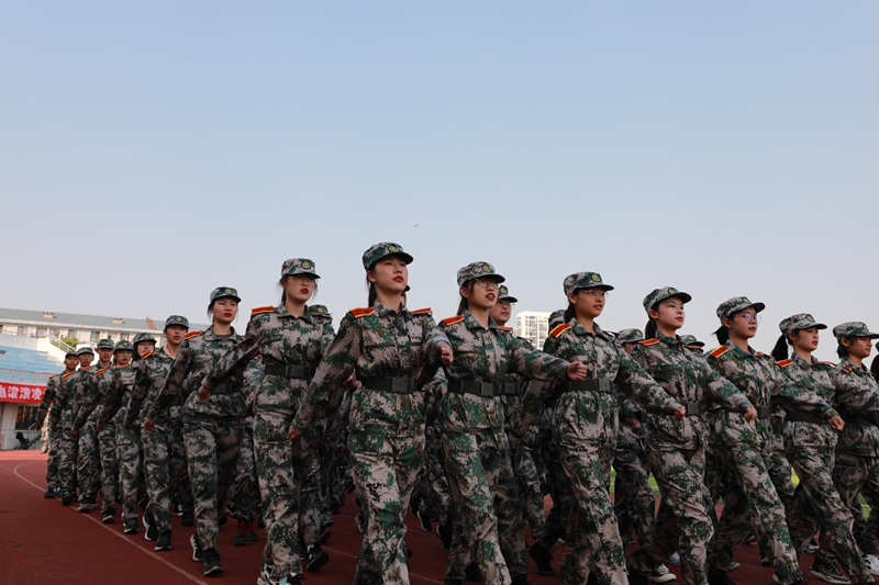 閱兵儀式前,舉行了莊嚴的升國旗儀式,全體師生面向國旗,升國旗、唱國歌。閱兵式隆重而盛大,王現學(xué)上校和戴月波副書(shū)記巡視各方陣,向同學(xué)們親切問(wèn)好,同學(xué)們回應呼號鏗鏘有力。會(huì )操時(shí),各個(gè)連隊齊步走過(guò)主席臺接受檢閱。同學(xué)們步伐整齊、口號嘹亮,充分展現了當代大學(xué)生良好的精神風(fēng)貌。軍訓課目匯報表演中,所有學(xué)員激情飽滿(mǎn)地完成了分列式、戰術(shù)、自救互救、擒敵拳、警棍術(shù)等贏(yíng)得了現場(chǎng)陣陣熱烈掌聲。