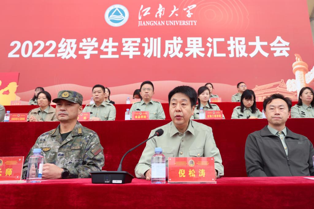 倪松濤發(fā)表講話(huà),他首先向全體參訓并圓滿(mǎn)完成任務(wù)的同學(xué)表示熱烈的祝賀,向承訓部門(mén)領(lǐng)導和官兵致以誠摯問(wèn)候和崇高敬意,向帶訓輔導員、組織保障軍訓工作的全體老師表示衷心的感謝。他對全體參訓同學(xué)提出三點(diǎn)希望:一是胸懷祖國,樹(shù)立遠大理想,堅定報國之志,努力成長(cháng)為黨和國家期盼的有志青年;二是苦練本領(lǐng),繼續發(fā)揚軍訓期間激昂奮進(jìn)的精神,以更自信和更主動(dòng)的狀態(tài)融入社會(huì );三是擔當作為,在以后的學(xué)習生活中,將軍營(yíng)綠融入江南綠,為中華民族偉大復興貢獻青春力量。