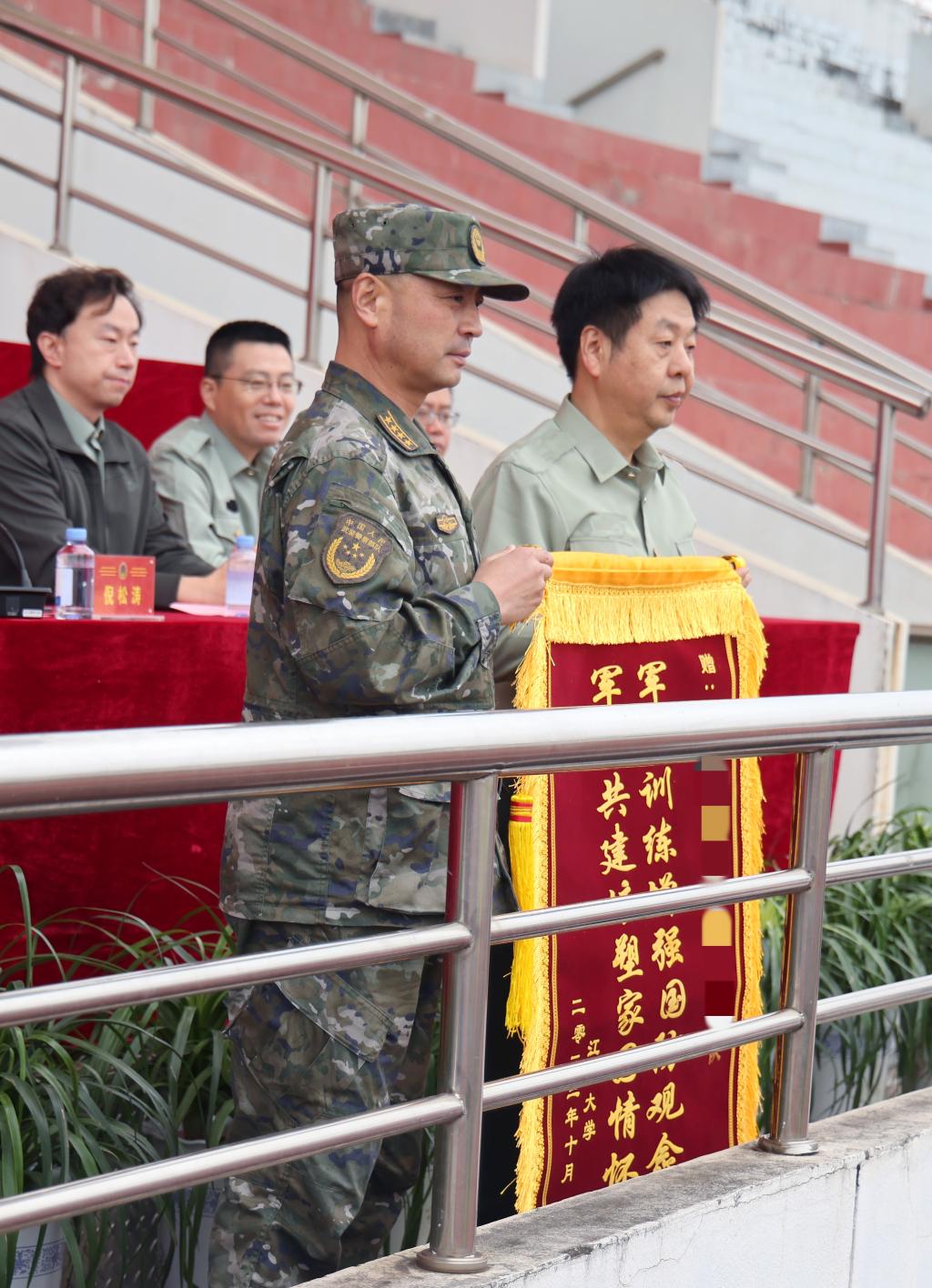 最后,倪松濤向承訓駐錫武警某部紀長(cháng)師支隊長(cháng)贈送錦旗,為期兩周的學(xué)生軍訓至此圓滿(mǎn)結束。