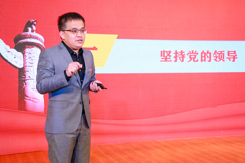 唐忠寶以《學(xué)習六中全會(huì )精神 牢牢把握“十個(gè)堅持”》為題,從“堅持黨的領(lǐng)導、堅持人民至上、堅持理論創(chuàng )新、堅持獨立自主、堅持中國道路、堅持胸懷天下、堅持開(kāi)拓創(chuàng )新、堅持敢于斗爭、堅持統一戰線(xiàn)、堅持自我革命”等十個(gè)方面一一展開(kāi)分析,深入闡釋了一百年來(lái)黨和人民積累的寶貴經(jīng)驗、創(chuàng )造的精神財富,鼓勵青年師生以史為鑒、學(xué)史鍛志、向史而新。