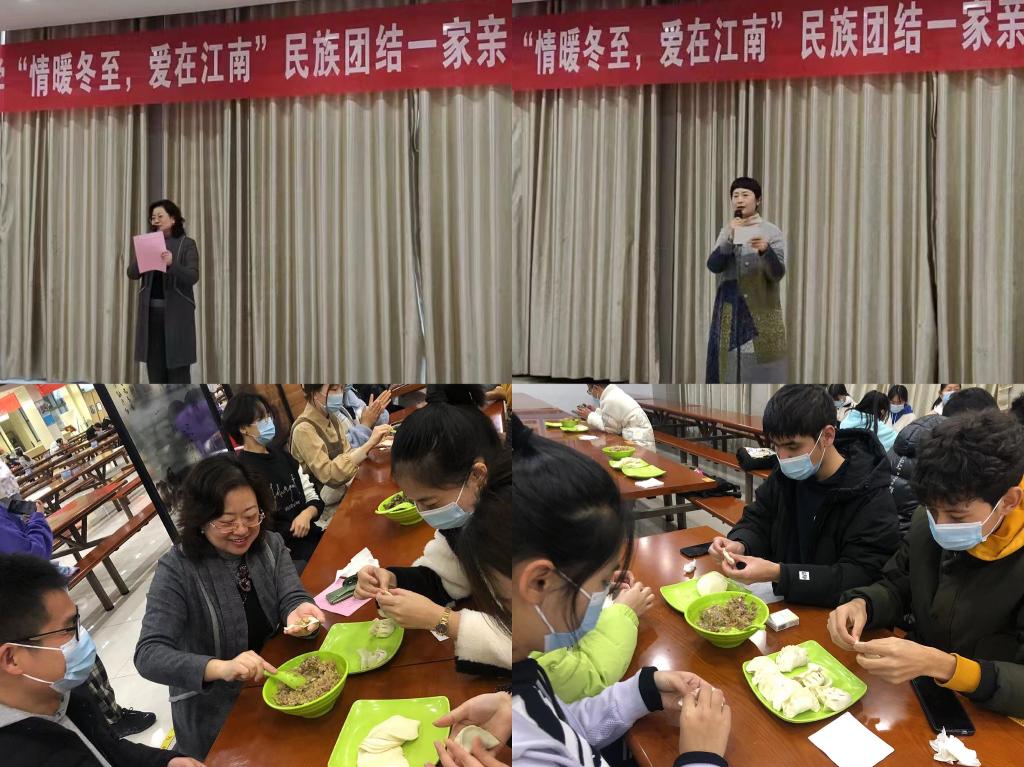為了繼續推進(jìn)黨史學(xué)習教育深入人心,同時(shí)認真貫徹落實(shí)黨的十九屆六中全會(huì )精神,弘揚中華優(yōu)秀傳統文化,鑄牢中華民族共同體意識,營(yíng)造民族團結濃厚氛圍,將“民族團結一家親”“三進(jìn)兩聯(lián)一交友”活動(dòng)落到實(shí)處,12月21日下午,在學(xué)生工作處(部)、后勤管理處的指導和幫助下,由“絲路夢(mèng)達”輔導員工作室承辦,校派駐教師古扎努爾、胡文波策劃組織開(kāi)展了“情暖冬至,愛(ài)在江南”冬至主題活動(dòng)。校統戰部副部長(cháng)王冰、學(xué)工處副處長(cháng)李榮華、學(xué)工處相關(guān)老師、各學(xué)院民族生輔導員以及部分大一新生參加了本次活動(dòng)。