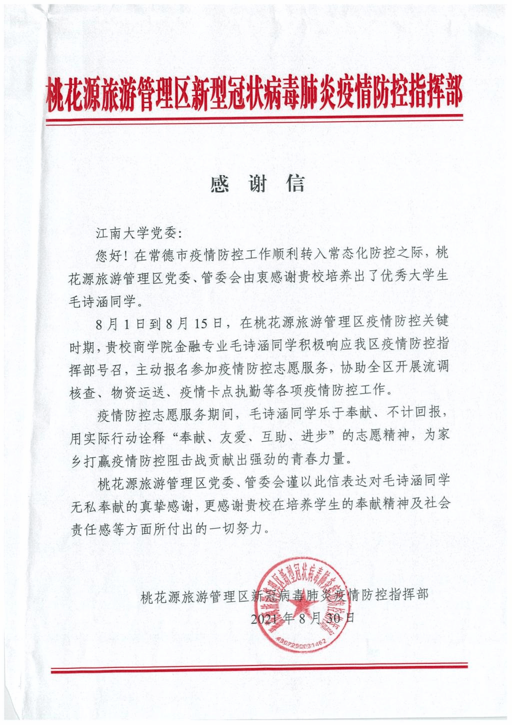 在近3個(gè)月的一線(xiàn)防疫工作中,oety歐億學(xué)生志愿者們任勞任怨、不畏艱險的工作得到了社會(huì )的廣泛好評。截至目前,學(xué)校已收到多封來(lái)自全國各地的縣市、城鎮、社區、村委會(huì )的感謝信,表達對oety歐億學(xué)子的深深謝意和感激之情。他們在信中對江南學(xué)子在戰疫過(guò)程中體現出的“奉獻、友愛(ài)、互助、進(jìn)步”的良好品質(zhì)予以充分肯定,對同學(xué)們樂(lè )于奉獻、不計回報的辛苦付出給予高度贊揚,對學(xué)校的精心培養和老師們的悉心教導表示衷心感謝。