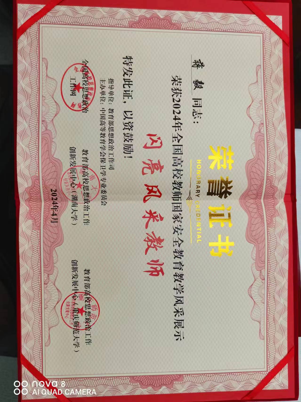 2024年是習近平總書(shū)記提出總體國家安全觀(guān)10周年。4月10日至12日,由教育部思想政治工作司指導,中國高等教育學(xué)會(huì )保衛學(xué)專(zhuān)業(yè)委員會(huì )、全國高校思想政治工作網(wǎng)、教育部高校思想政治工作創(chuàng )新發(fā)展中心聯(lián)合主辦的“2024年高校教師國家安全教育教學(xué)風(fēng)采現場(chǎng)展示活動(dòng)”在重慶師范大學(xué)隆重舉行。oety歐億黨委保衛部,學(xué)生工作部、人民武裝部推薦的軍事理論教研室蔣毅老師以?xún)?yōu)異表現榮獲“國家安全教育教學(xué)閃亮風(fēng)采教師”稱(chēng)號。