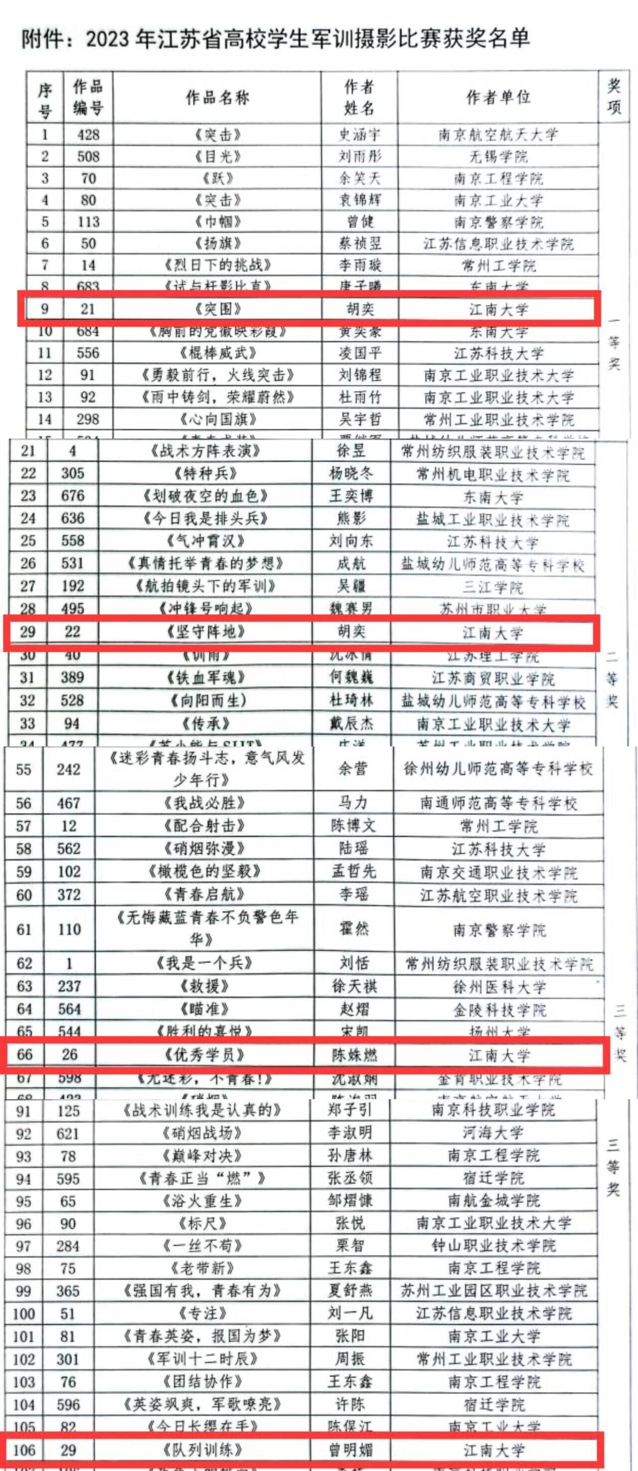近日,2023年江蘇省高校學(xué)生軍訓攝影比賽評選結果正式公布,oety歐億人民武裝部報送的參賽作品獲一等獎1項、二等獎1項、三等獎2項。