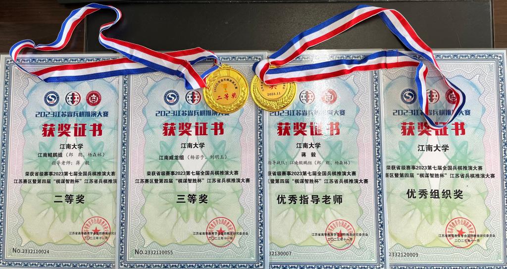 oety歐億學(xué)生郎朗、楊森林組建的“江南鯤鵬組”戰隊榮獲二等獎,楊若予、劉明玉組建的“江南威龍組”戰隊榮獲三等獎,軍事理論教研室主任蔣毅榮獲“優(yōu)秀指導老師”稱(chēng)號,學(xué)校榮獲“優(yōu)秀組織獎”。