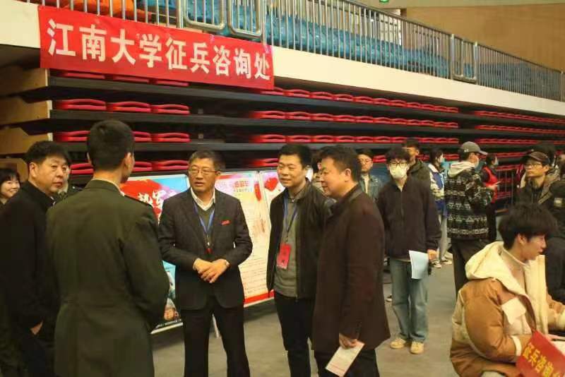 為鼓勵畢業(yè)生積極參軍應征入伍,提高兵員征集質(zhì)量,加強國防和軍隊現代化建設,3月26日,人民武裝部聯(lián)合無(wú)錫空軍某部隊,在學(xué)校體育館的2023屆畢業(yè)生大型招聘會(huì )現場(chǎng)開(kāi)展直招軍官與征兵宣傳活動(dòng)。校長(cháng)陳衛、副校長(cháng)倪松濤在人武部周偉濤部長(cháng)的陪同下蒞臨現場(chǎng)指導工作。
