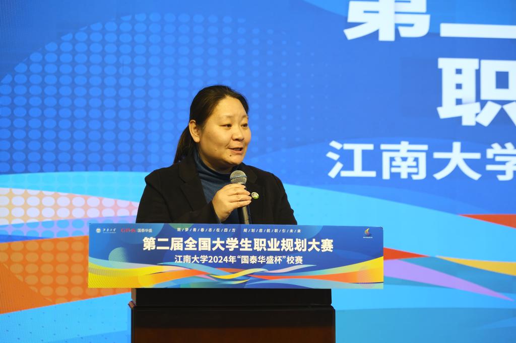 比賽最后,江蘇國泰華盛實(shí)業(yè)有限公司招聘經(jīng)理胡愷雯作點(diǎn)評講話(huà)。她從自我認知、目標設定及創(chuàng )新思維三方面對參賽選手們的精彩表現給予了高度評價(jià);她強調,對選手們而言,今天的比賽不僅是能力的體現,更是一次反思和成長(cháng)的機會(huì ),希望大家能將比賽的經(jīng)驗轉化為不斷成長(cháng)的動(dòng)力,持續學(xué)習與進(jìn)取,勇敢追求自己的職業(yè)夢(mèng)想,期待未來(lái)能夠看到大家在各自的領(lǐng)域中發(fā)光發(fā)熱。