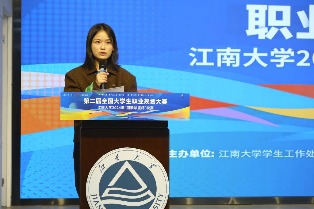 大賽分為成長(cháng)賽道和就業(yè)賽道。成長(cháng)賽道10位選手圍繞職業(yè)目標、學(xué)習實(shí)踐、動(dòng)態(tài)調整等方面充分展示了各自的職業(yè)生涯目標和堅實(shí)的成長(cháng)路徑;就業(yè)賽道9位選手圍繞職業(yè)目標、崗位勝任力、發(fā)展潛力等方面全面而生動(dòng)地展示自身的求職實(shí)戰能力和對崗位的深刻思考。選手們將個(gè)人理想與國家需要、經(jīng)濟社會(huì )發(fā)展緊密結合,充分展現了江南學(xué)子積極進(jìn)取、努力奮斗的精神面貌和到祖國最需要地方建功立業(yè)的家國情懷。評委們根據每位選手的展示內容,進(jìn)行了針對性的提問(wèn),并從情懷價(jià)值呈現、職業(yè)規劃內涵、語(yǔ)言表達細節等方面給予改進(jìn)意見(jiàn)和建議,為選手們提供了寶貴的指導和啟發(fā)。